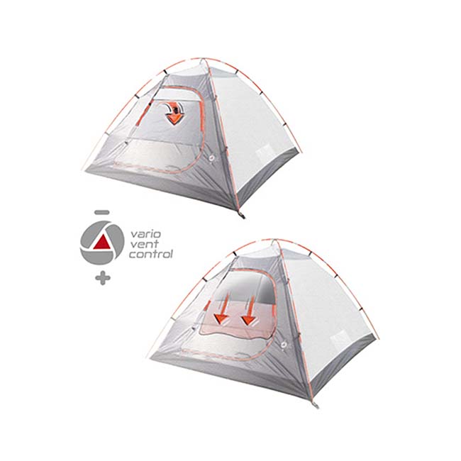 Inner Tent: Darkened inner tent, Vario Vent Control entry, tub floor, inner pockets, lamp holder