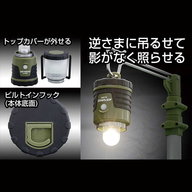 • Built-in Hook: Take off Top-end cap. Hang lantern upside down for forward area light.