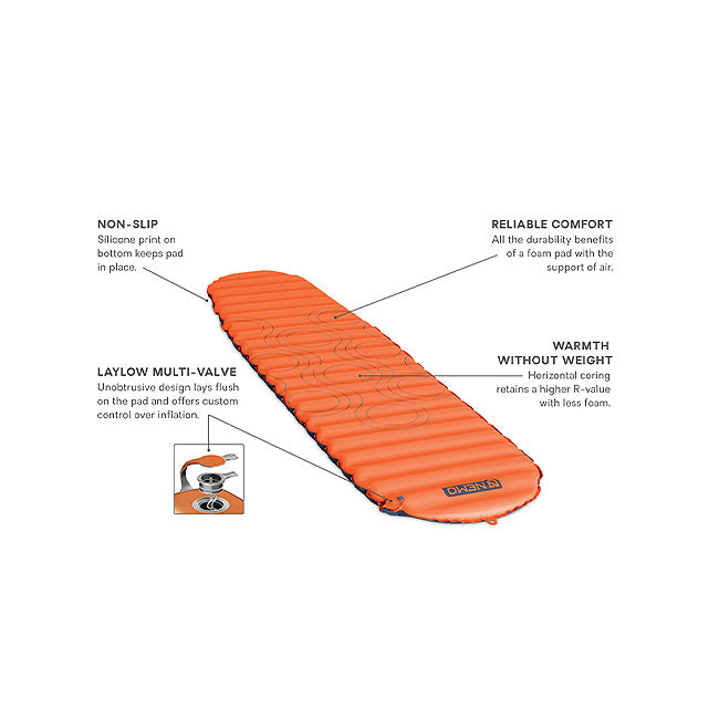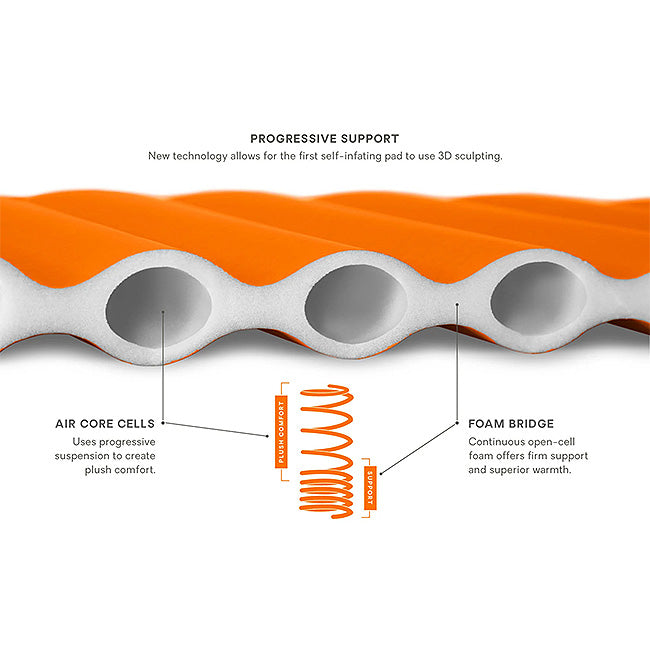 - Horizontal coring retains a higher R-value with less foam, so you don’t have to sacrifice weight or packed size for warmth.