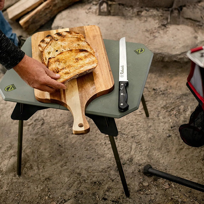 - Aluminum legs are integrated with zinc pole tips for a stable and supportive outdoor camp table.