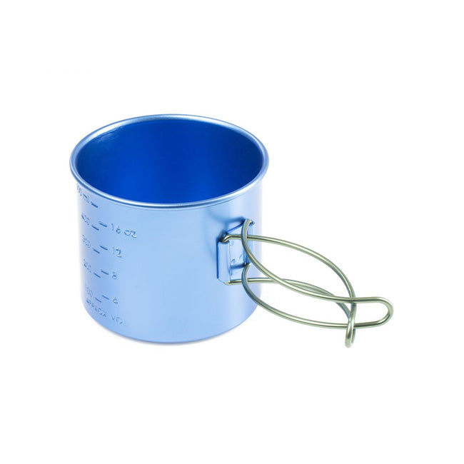• Cup is designed to slip over standard 1L water bottles or hold and store one small fuel canister for compact storage